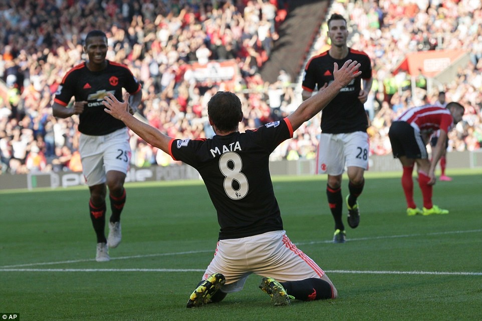 | Juan Mata ăn mừng bàn thắng thứ 2 cho MU tại giải năm nay. Trong trận thua 1-2 trên sân Swansea, cựu ngôi sao Chelsea là người ghi bàn danh dự cho "Quỷ đỏ". |