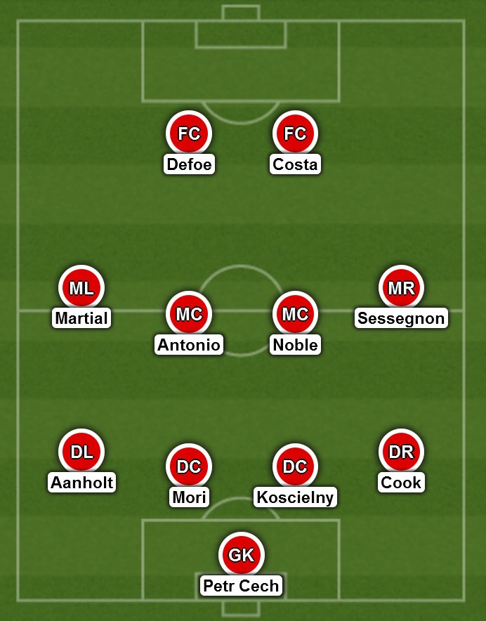 | Martial và Diego Costa góp mặt vào đội hình tiêu biểu vòng 20 Premier League. |