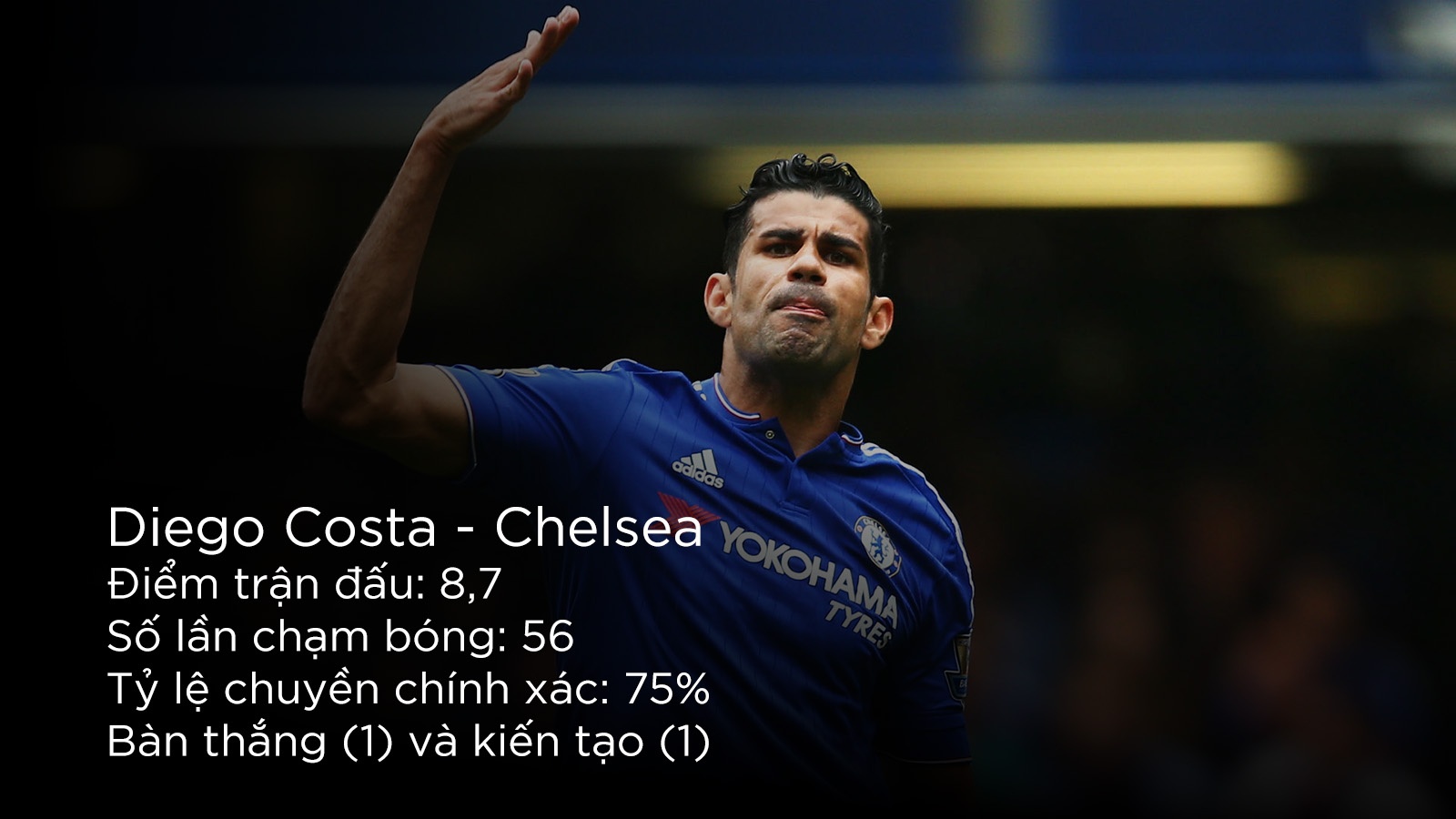 | Thi đấu trên sân của Crystal Palace, chân sút người Tây Ban Nha góp phần quan trọng vào chiến thắng đầu tiên của Chelsea dưới thời huấn luyện viên Guus Hiddink. Costa ghi bàn và kiến tạo trong trận "The Blues" đánh bại Crystal Palace 3-0. |
