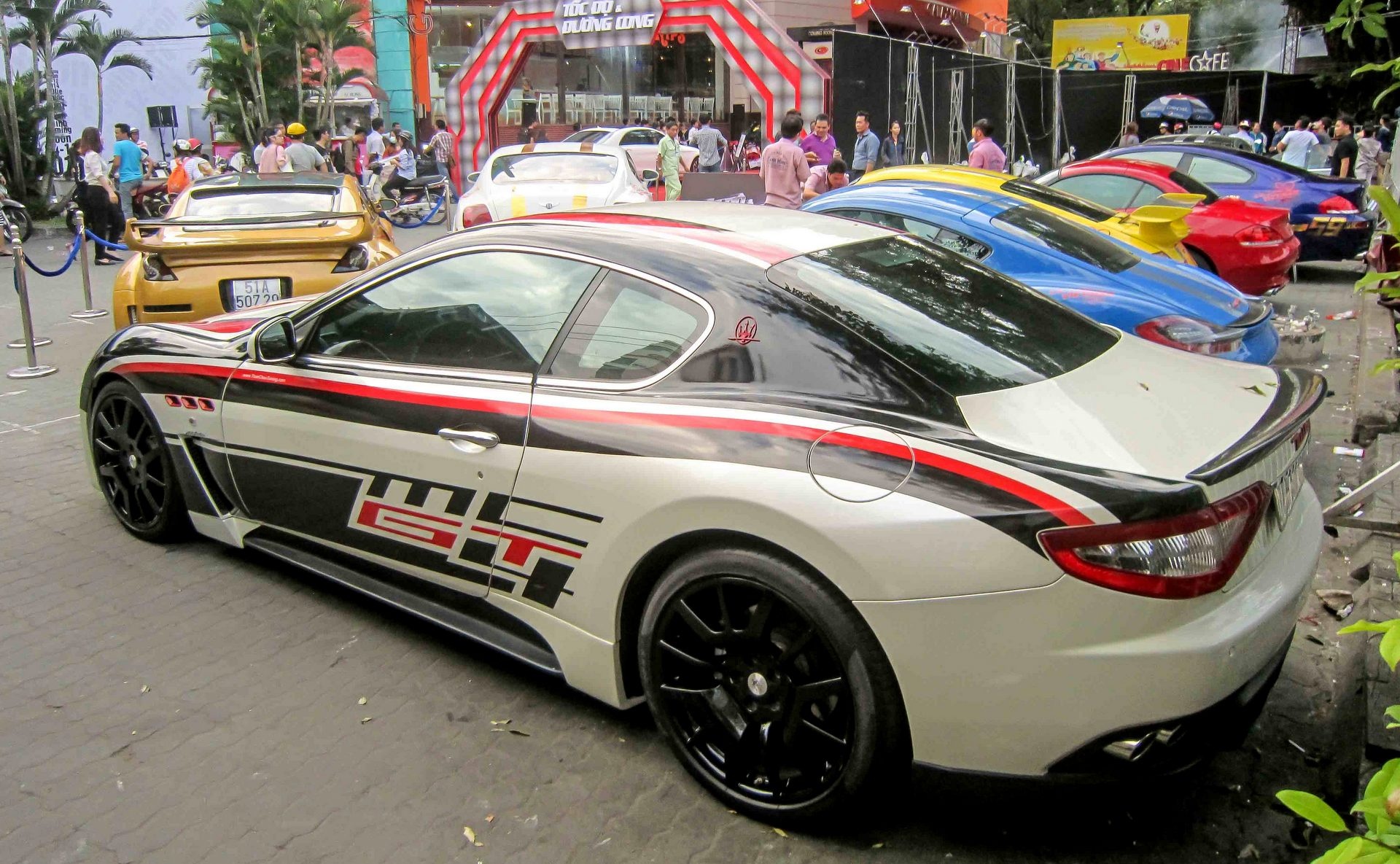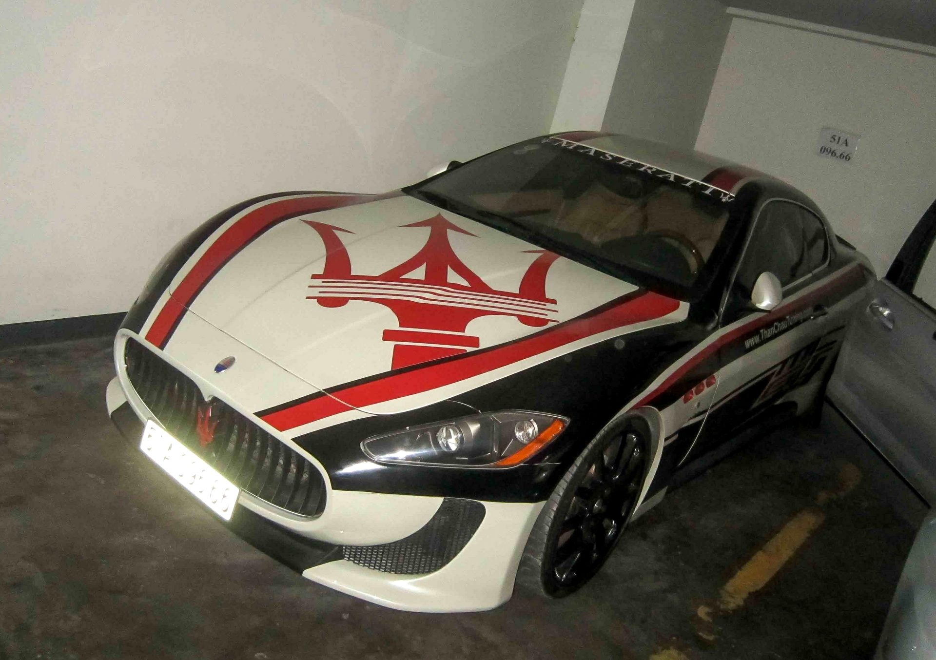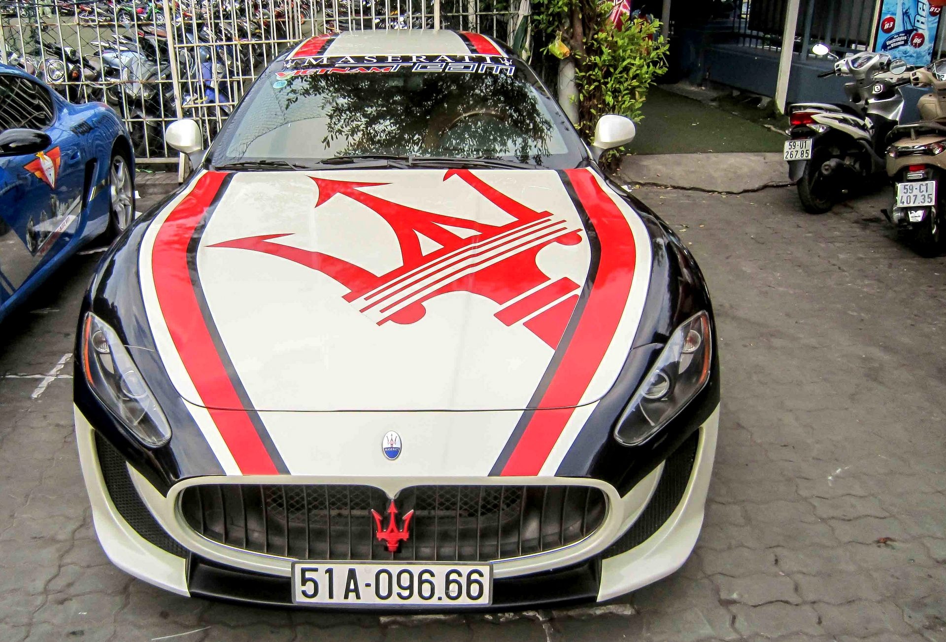 Chiếc Maserati GranTurismo độ kit MC Stradale sau nhiều lần thay đổi màu đã chọn cho mình bộ decal nổi bật, thường xuyên xuất hiện trên những tuyến đường trung tâm Sài Gòn.