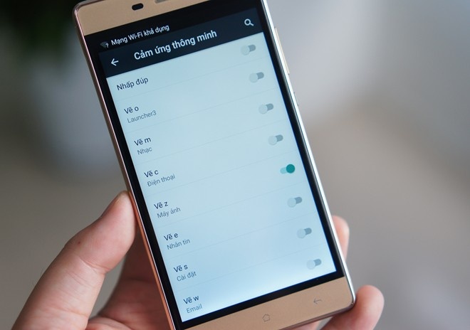 Chẳng hạn, trong phần cài đặt của máy có tính năng cảm ứng thông minh, cho phép người dùng tuỳ chọn bật các tính năng nhấn đúp để mở màn hình, vẽ chữ Z để mở camera, vẽ E để mở tin nhắn.