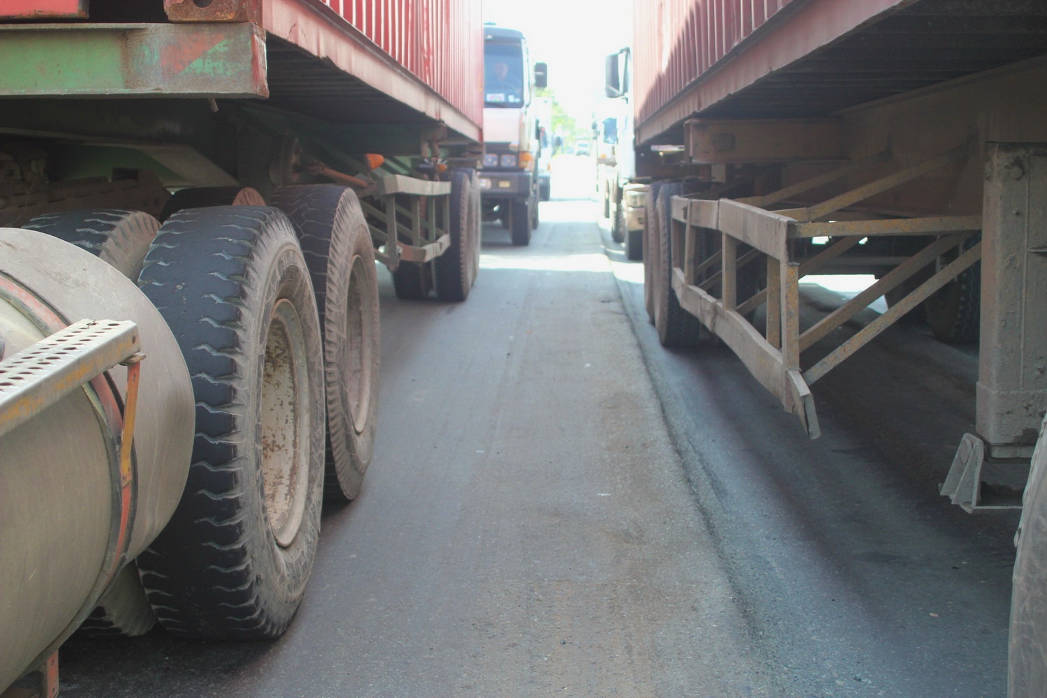 Các loại xe tải trọng lớn cày nát con đường này suốt ngày đêm.