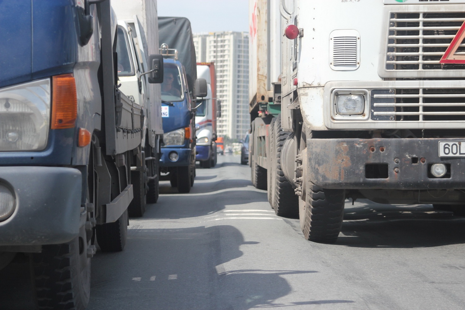 Số lượng xe container, ôtô tải lưu thông trên tuyến đường Đồng Văn Cống và Mai Chí Thọ để ra vào cảng Cát Lái (Q.2, TP.HCM) ngày càng tăng, khiến 2 con đường này bị lún nghiêm trọng.