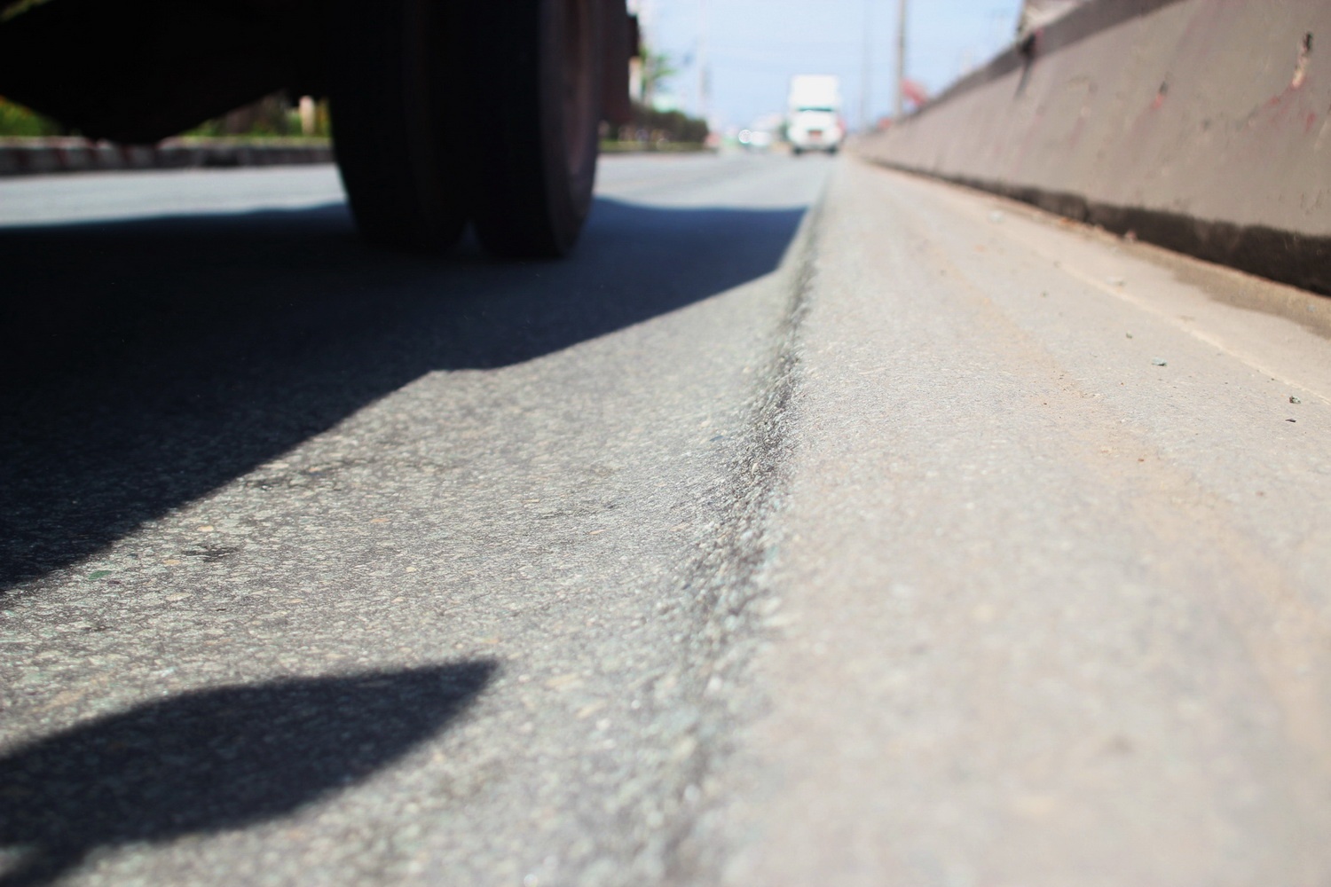 Dọc tuyến đường vào cảng Cát Lái có những chỗ lún sâu gần 20 cm khiến ô tô gầm thấp bị cạ xuống gờ bê tông nhựa, lái xe luôn phải thận trọng khi chạy qua.