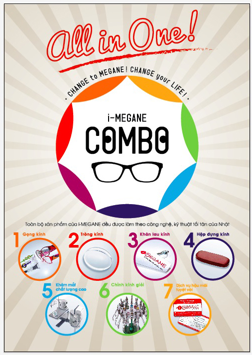 Trong chương trình này, khách hàng còn được trải nghiệm hình thức mua sắm mới là mua mắt kính theo combo. Mỗi combo có giá 1-3 triệu đồng, bao gồm tròng kính Nhật Bản, gọng kính và tất cả dịch vụ đi kèm như đo thị lực, điều chỉnh kính, tặng hộp, khăn lau kính. Khách hàng còn được hưởng các chế độ hậu mãi trong suốt thời gian sử dụng.