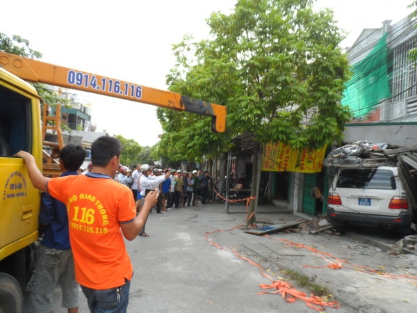 Cú đâm rất mạnh của xe ô tô làm sập một bên tường và đè nát 1 chiếc xe máy, 2 chiếc xe đạp và một số vật dụng khác của gia đình chị Hoàng Thị Bích Liên.