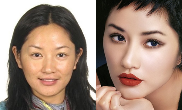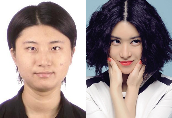 | Châu Tấn, nàng Hoàng Dung trong Anh hùng xạ điêu 2003, rất tự tin khi chụp ảnh thẻ với khuôn mặt không trang điểm. |