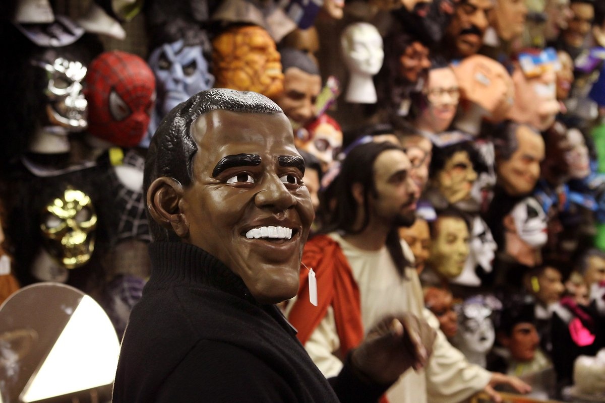 Mặt nạ Tổng thống Barack Obama, người sắp rời Nhà Trắng, cũng xuất hiện trong mùa Halloween năm nay. Ảnh: Reuters.