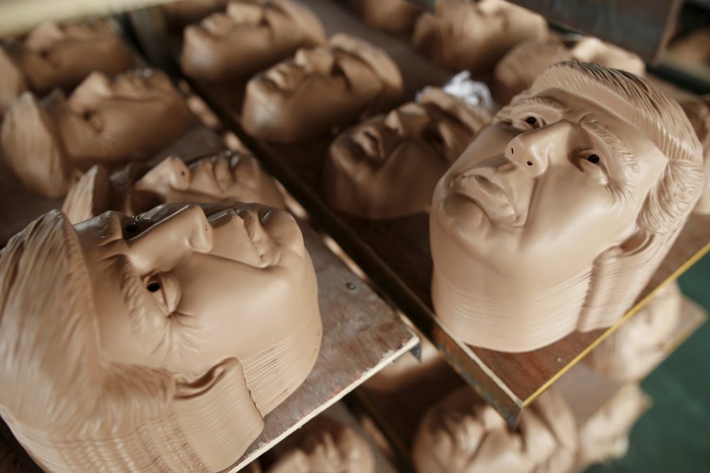 Mặt nạ ông Trump được cho trông vui nhộn hơn mặt nạ Clinton. Ảnh: Reuters.