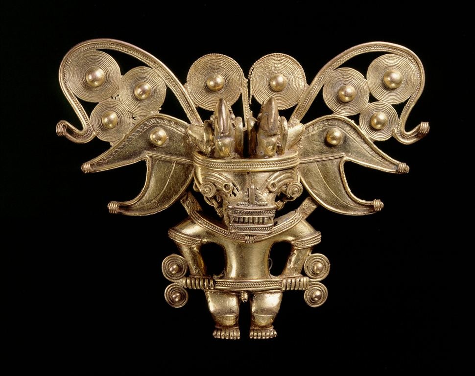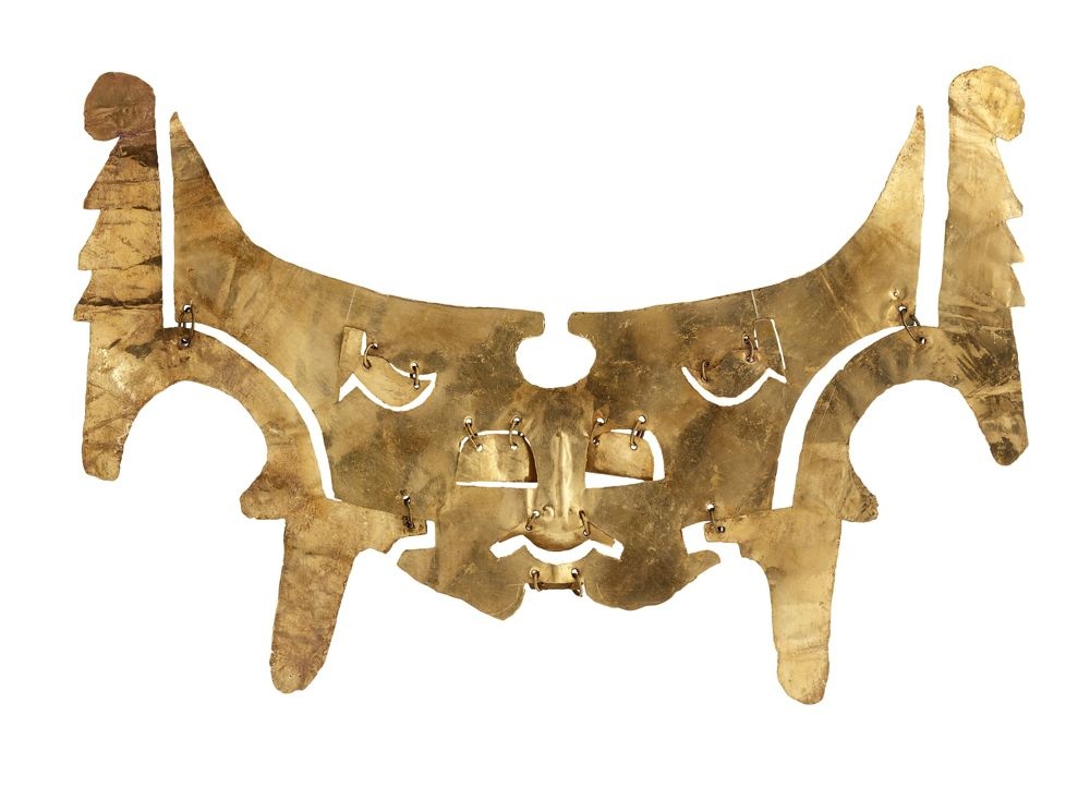 | Trang sức bằng vàng treo ở ngực có từ nền văn minh Popayan. |