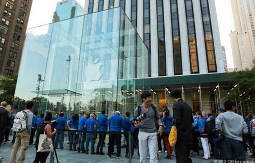 | Hàng trăm người chờ iPhone 5S, 5C lên kệ tại một cửa hàng của Apple tại Fifth Avenue, Manhattan Mỹ. |