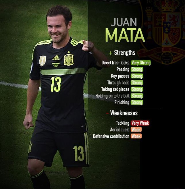 Mùa này, Juan Mata cho thấy phong độ ổn định bằng việc góp mặt vào đội hình MU ở cả 28 vòng đấu. Trong tổng số 2177 phút ra sân, anh thực hiện 40 đường chuyền quan trọng cho đồng đội. Và tỷ lệ chuyền bóng chính xác lên tới 89%. Đến thời điểm này, Mata đã ghi 24 bàn sau 89 lần ra sân. Chắc chắn anh sẽ còn đóng góp nhiều hơn cho "Quỷ đỏ".