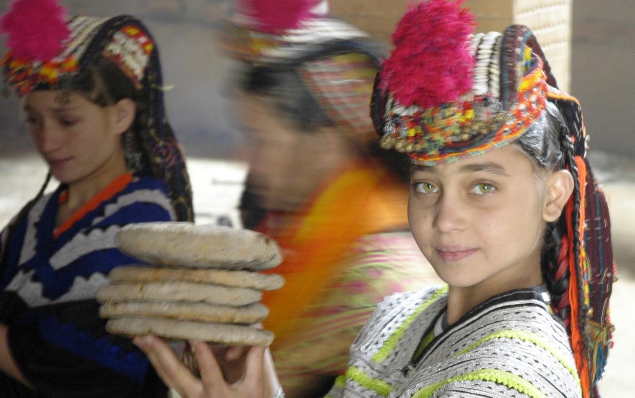 Người Kalash sống tại huyện Chitral, Pakistan và chủ yếu sử dụng ngôn ngữ riêng của bộ tộc. Họ là cộng đồng đặc biệt khi có màu da trắng, mắt xanh. Trong khi đó, người Pakistan bản địa chủ yếu da ngăm đen. Theo các nghiên cứu, ADN của tộc người này hoàn toàn không giống ADN người châu Âu. Tuy nhiên, rất khó để phân biệt họ khi đứng cạnh một người châu Âu khác. Ảnh: Wild Frontiers. |