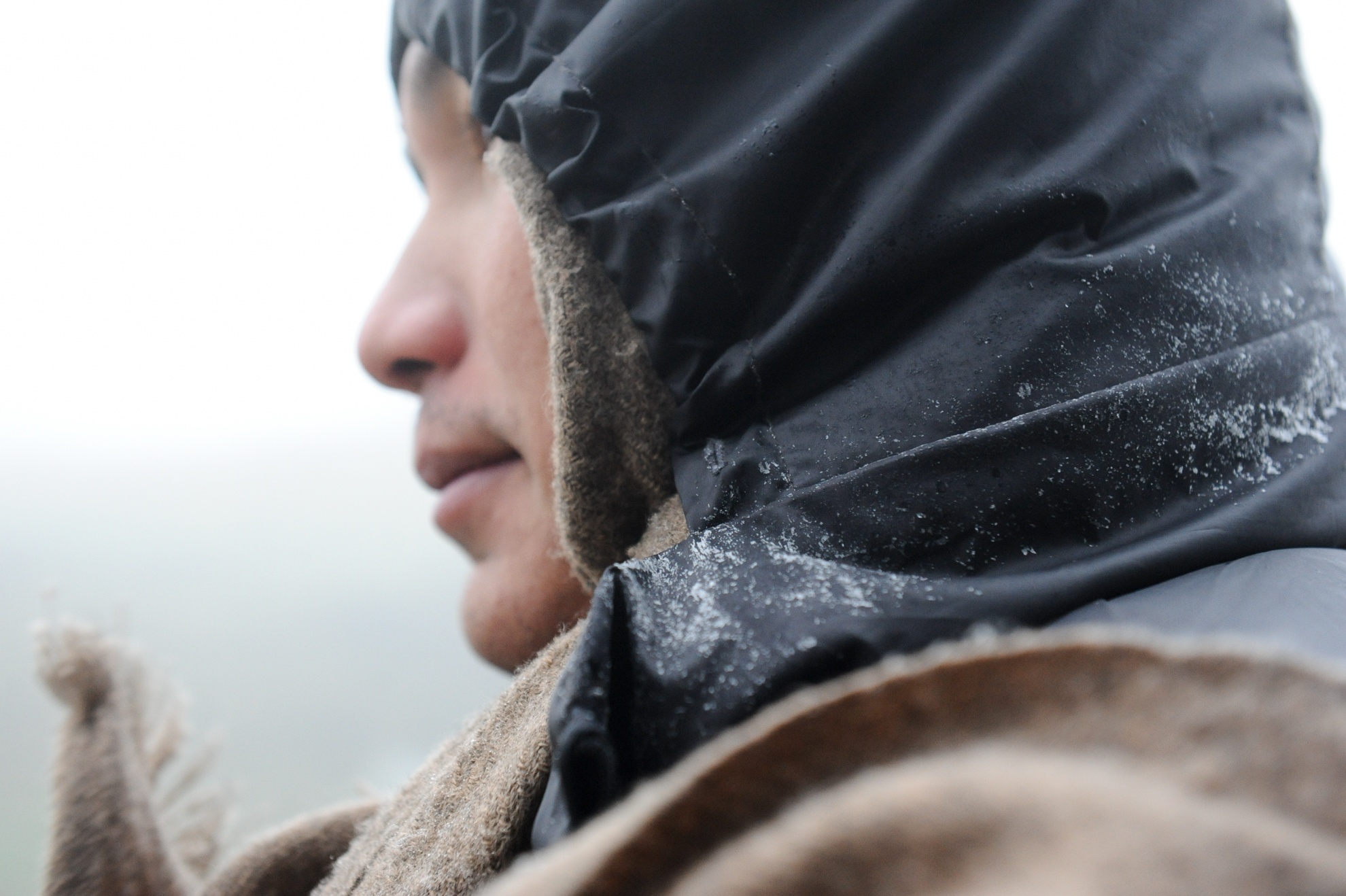 Chỉ cần đứng ngoài trời 15 phút, quần áo của du khách đã bám đầy băng. |