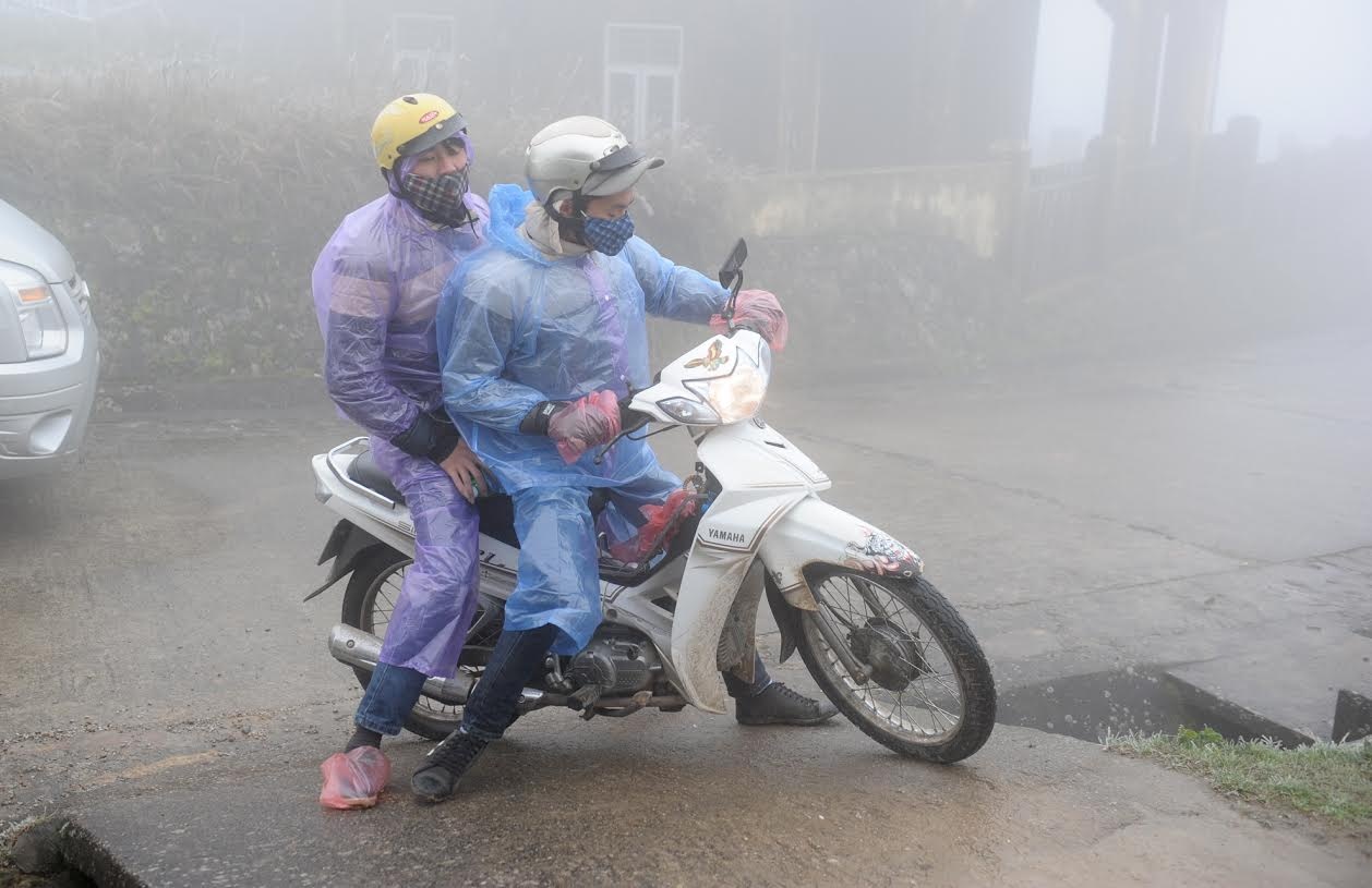 | Người đi xe máy cũng gặp khó khăn khi di chuyển trong cái lạnh dưới 0 độ C. |