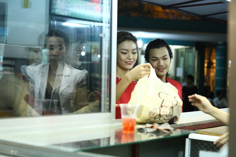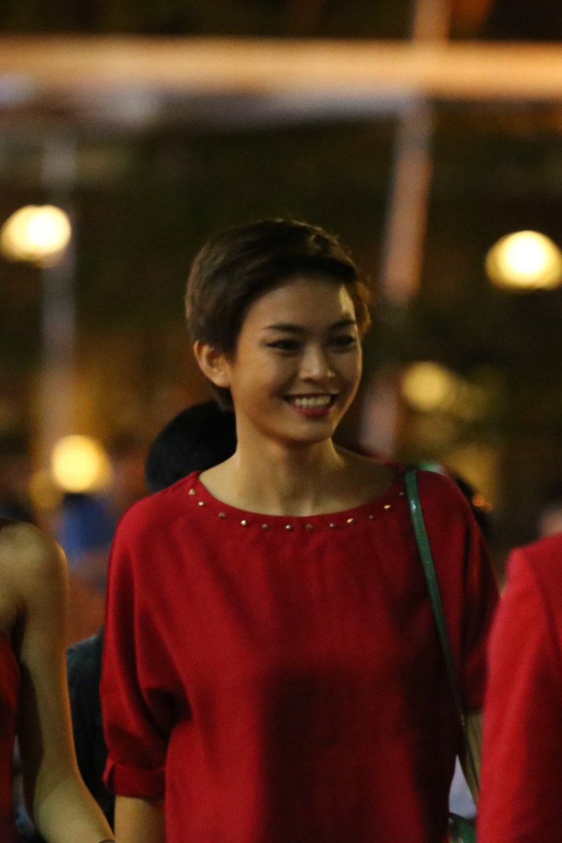 Một ngày sau khi gặp sự cố về sức khỏe, quán quân "Vietnam's Next Top Model 2013" đã xuất hiện với vẻ ngoài tươi tắn, đầy sức sống khi cùng top 4 của cuộc thi đi xem phim.