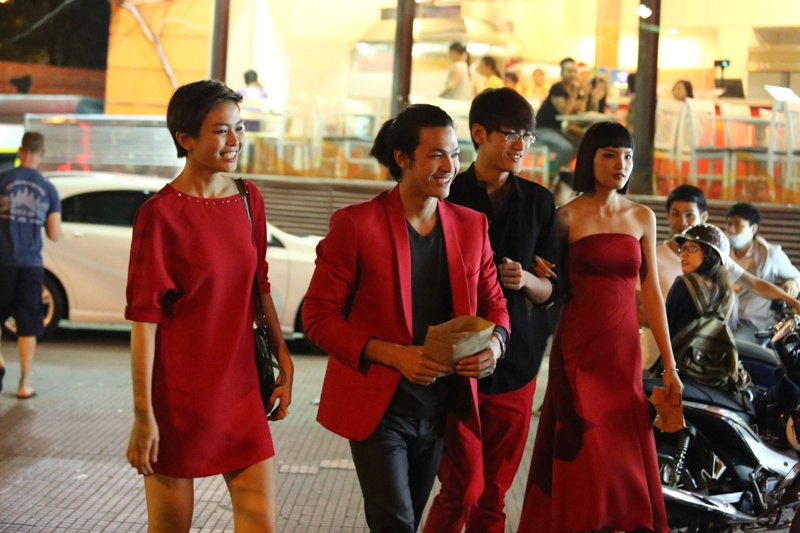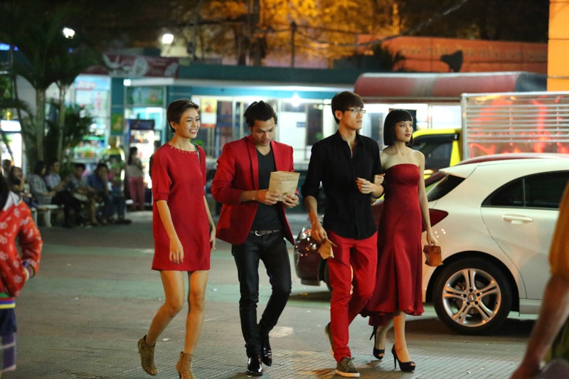 Mâu Thanh Thủy đi xem phim cùng 3 người bạn đồng hành với mình tại cuộc thi.