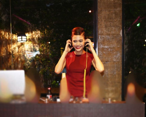 | Người đẹp hào hứng cho biết, đây là lần đầu tiên cô được thử công việc mix nhạc trên bàn DJ. Mâu Thủy cũng khá bất ngờ vì DJ điển trai nhiệt tình hướng dẫn mình. |