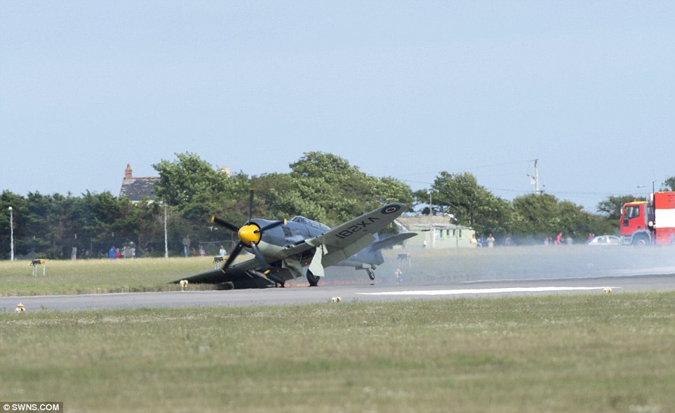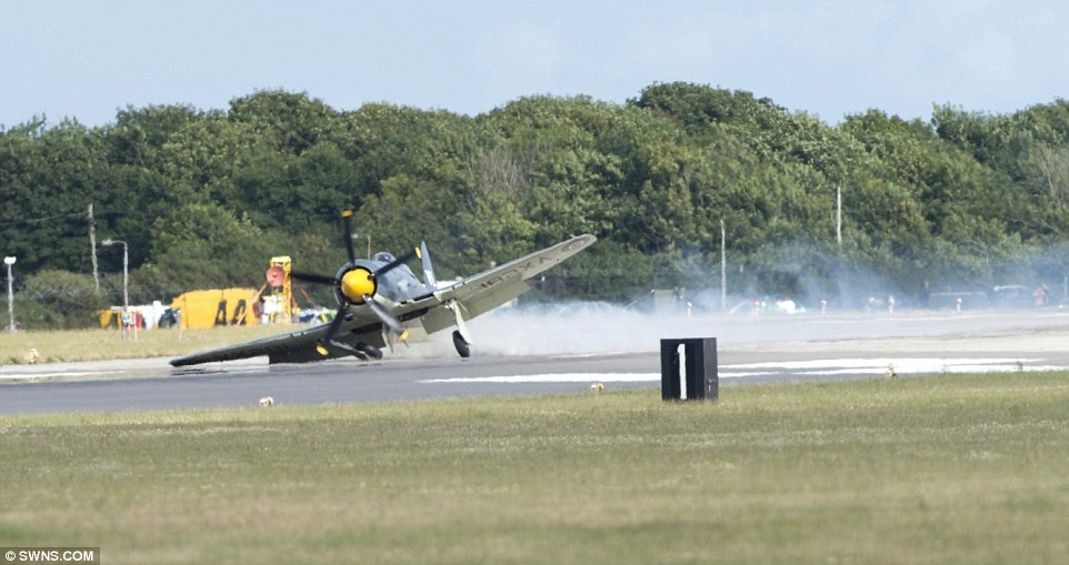 Sự cố phát sinh khi Hawker Sea Fury đang biểu diễn. Máy bay đâm mạnh vào đường băng rồi quay tròn trên bãi cỏ trước sự ngỡ ngàng của hàng nghìn khán giả. |