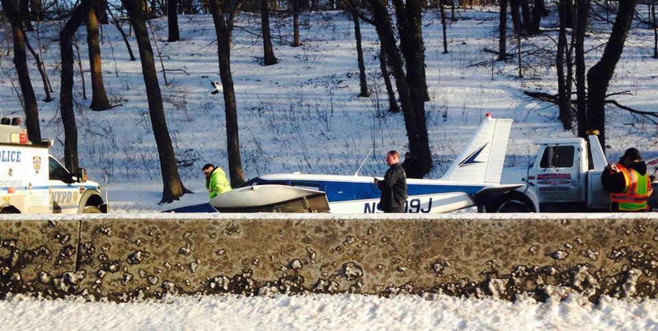 Telegraph dẫn lời nhân viên cứu hộ cho biết, chiếc máy bay cánh quạt loại nhỏ Piper PA-28 gặp nạn khi chở 3 người, bao gồm một người đàn ông và 2 người phụ nữ, hôm 4/1 theo giờ địa phương. Nó đáp xuống đường cao tốc Bronx thuộc thành phố New York, Mỹ. Những hành khách may mắn chỉ bị thương nhẹ sau tai nạn. Ảnh: AP