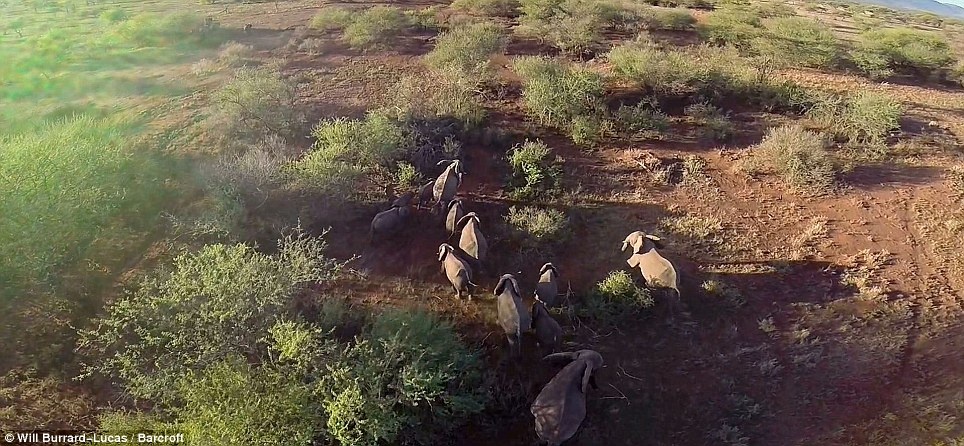 Máy bay không người lái chụp ảnh bầy voi đang lang thang kiếm ăn. Lucas hy vọng, phi đội BeetleCopter sẽ giúp anh và những nhiếp ảnh gia động vật khác ghi lại những thước phim hay hình ảnh độc đáo về cuộc sống hoang dã trên khắp châu Phi. Ảnh: Will Burrard Lucas.