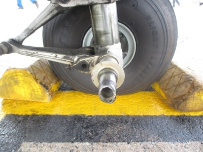 - Nếu biết trước sẽ phải có những biện pháp trợ giúp. Ngay cả trường hợp mất hai bánh ở càng trước cũng có thể hạ được. Khi đó, phi công cho máy bay tiếp đất bằng hai bánh sau, điều chỉnh máy bay chạy tốc độ chậm nhất có thể (dưới 100 km) rồi mới để đầu máy bay tiếp đất với sự hỗ trợ của các thiết bị phòng cháy, chống va đập.