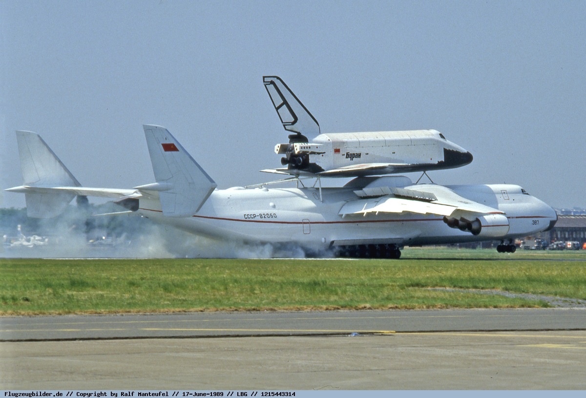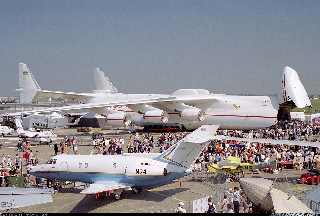 An-225 xuất hiện công khai lần đầu tại triển lãm Paris Air Show năm 1989. Tại đây, nó thiết lập kỷ lục là chiếc máy bay vận tải lớn nhất với trọng lượng cất cánh lên đến 640 tấn. Ảnh: Airlines.net