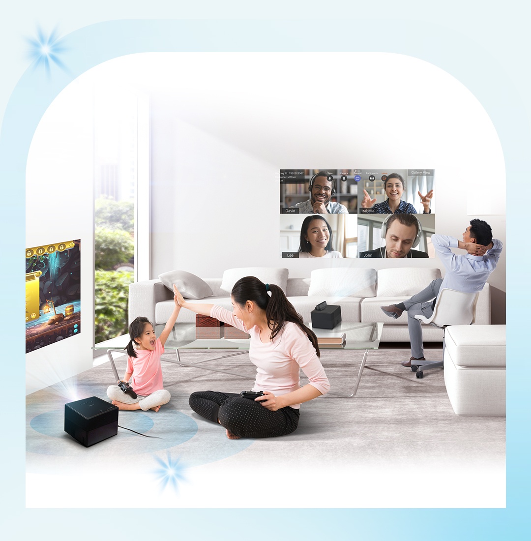 Với khả năng trình chiếu màn hình đến 130 inch với góc nhìn siêu rộng 178 độ, chất lượng hình ảnh Full HD và 4K Pro UHD tương ứng, những người yêu điện ảnh, thể thao và trò chơi điện tử có thể tận hưởng hầu hết nội dung yêu thích trên mọi mặt phẳng trong nhà, với kích thước tùy chỉnh và chất lượng hình ảnh, âm thanh chuyên nghiệp.