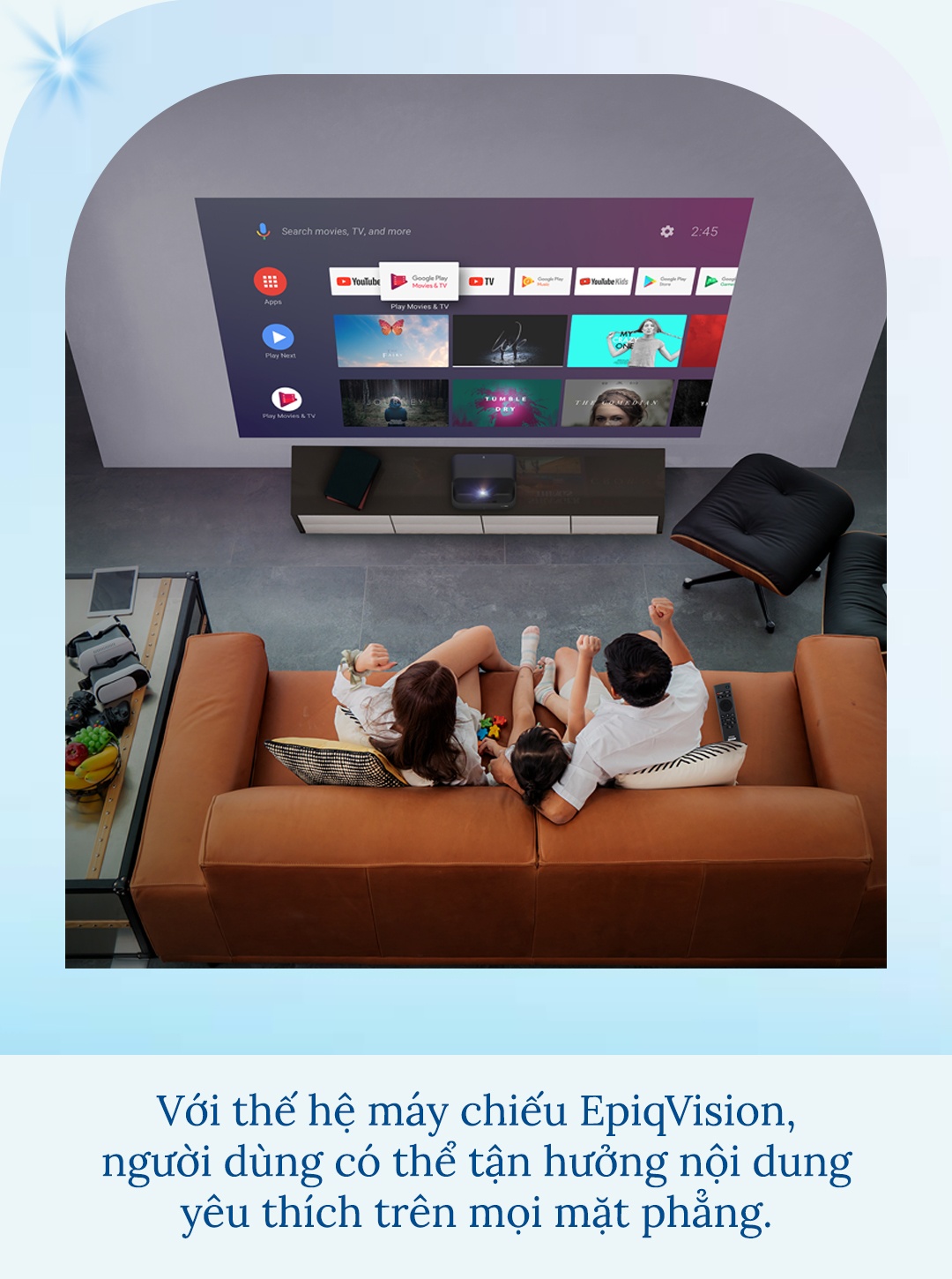 Ngoài ra, được tích hợp tính năng Android TV, các dòng máy chiếu này còn mang đến hàng nghìn bộ phim, chương trình và trò chơi trên Google Play, YouTube cũng như nhiều ứng dụng phổ biến khác. Bạn cũng có thể truyền trực tiếp các ứng dụng giải trí yêu thích của bản thân từ smartphone, tablet, laptop… lên màn hình lớn. Tính năng Android TV cũng cho phép bạn lên kế hoạch trong ngày, truy cập lịch trình hoặc điều khiển các thiết bị nhà thông minh như điều chỉnh nhiệt độ, ánh sáng trong nhà.