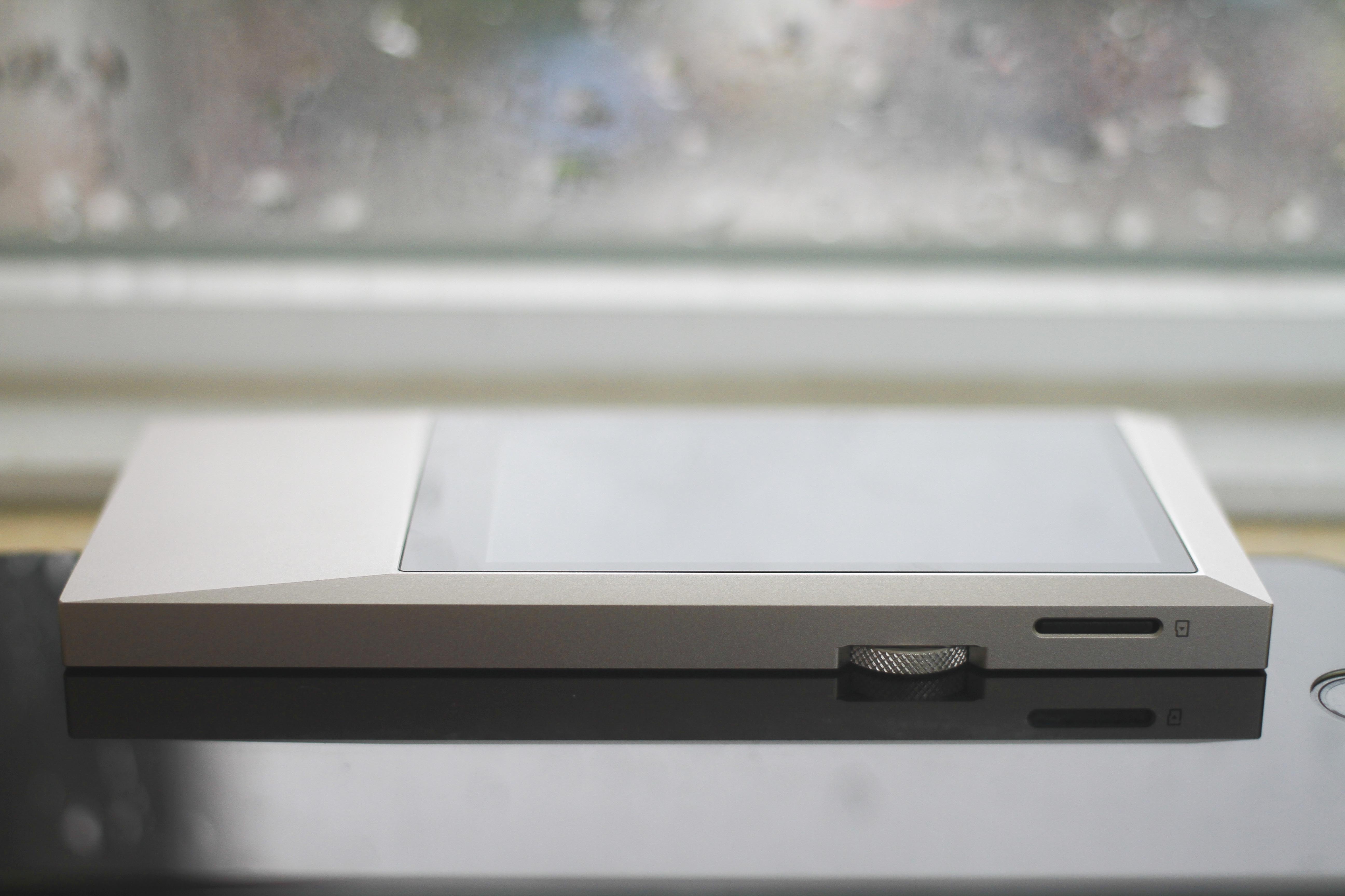 | Phím nguồn và giắc cắm 3,5 mm được bố trí ở cạnh trên. AK Jr không có cổng line out như các dòng máy hỗ trợ Dual DAC trước đó. |