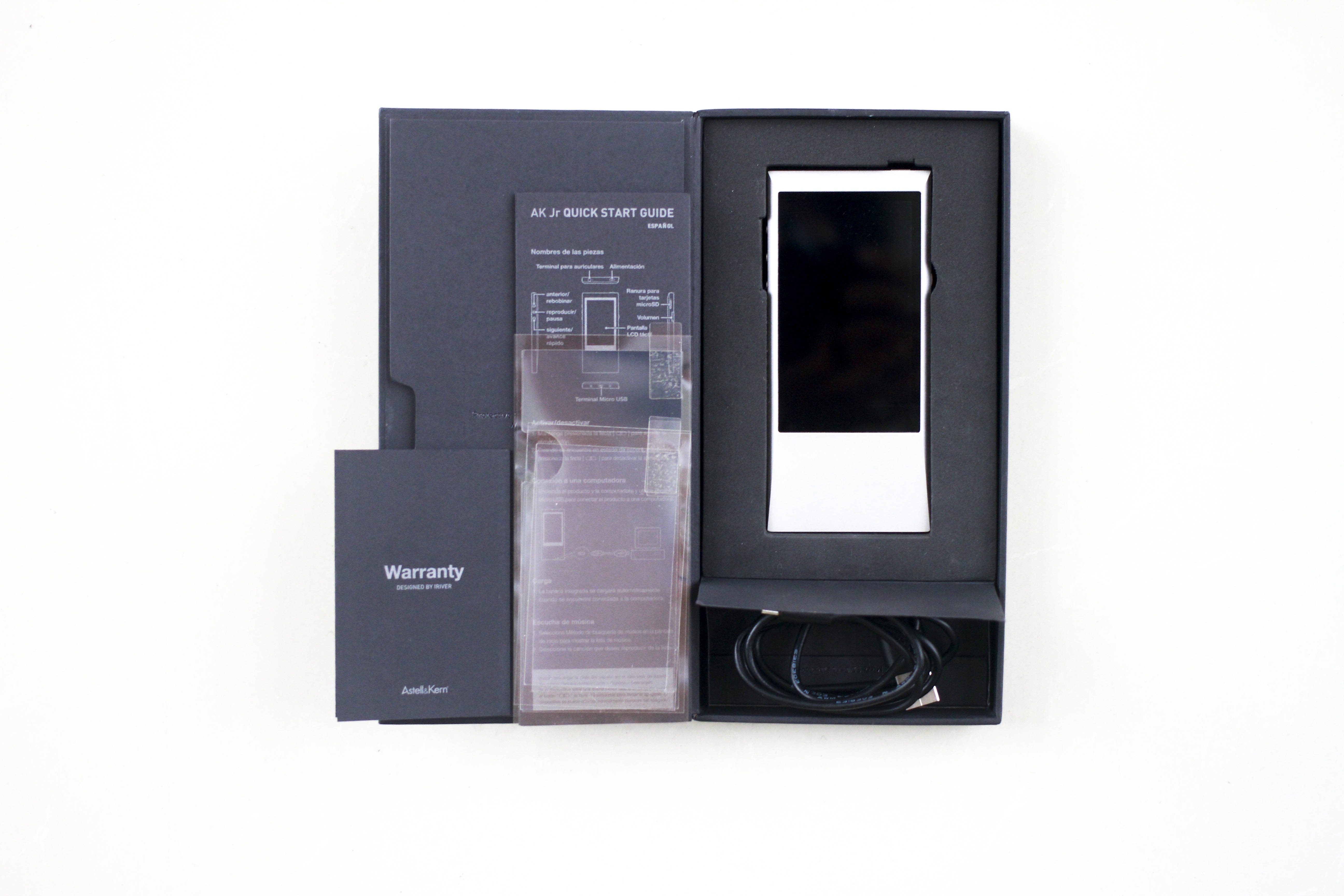 | AK Jr lấy cảm hứng thiết kế từ mẫu AK240. Máy vẫn được đóng hộp theo phong cách truyền thống của Astell&Kern, nó trông gọn gàng. |