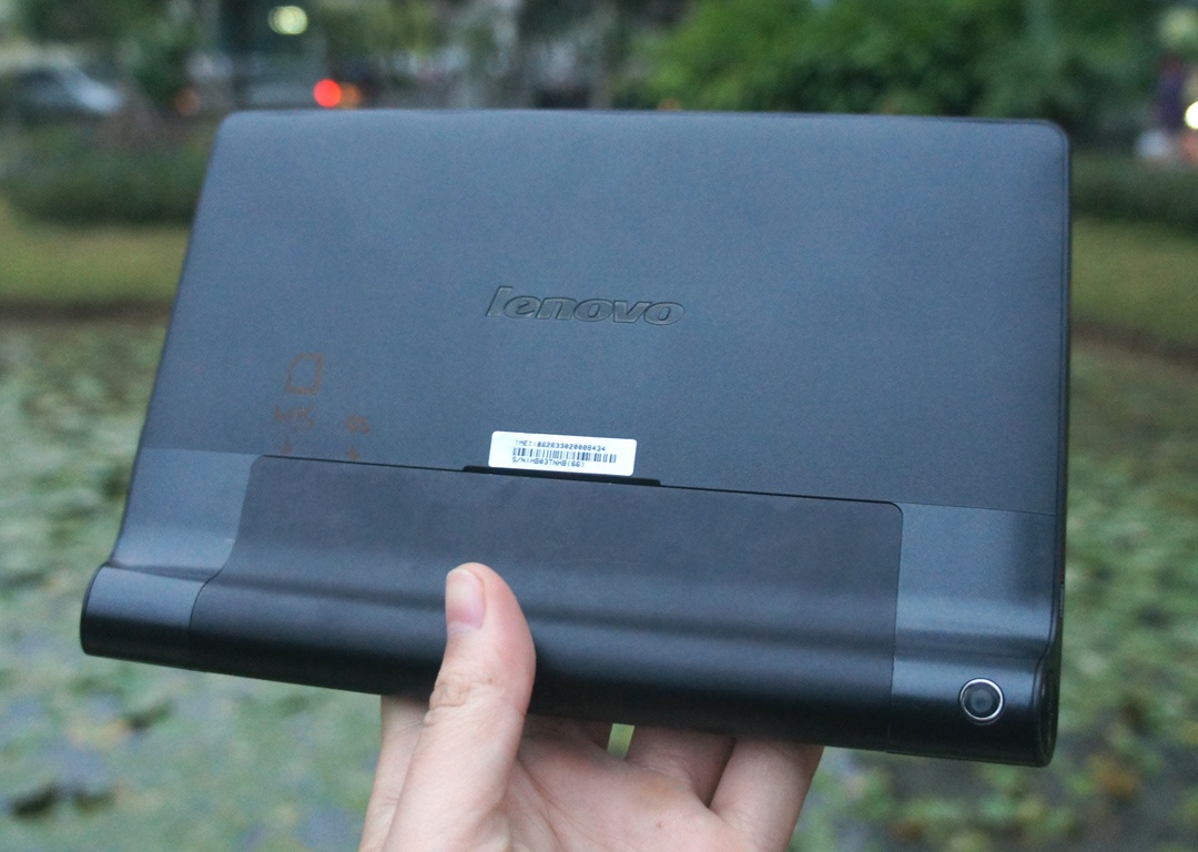 Cận cảnh mặt sau của máy. Về cấu hình, Lenovo Yoga Tablet 8 sở hữu màn hình 8 inch 1.280 x 800 pixel, chip lõi tứ MediaTek tốc độ 1,2 GHz, RAM 1 GB và camera 5 megapixel.