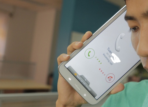 Nghe gọi bằng tablet 8 inch. Ảnh: Thành Duy. |