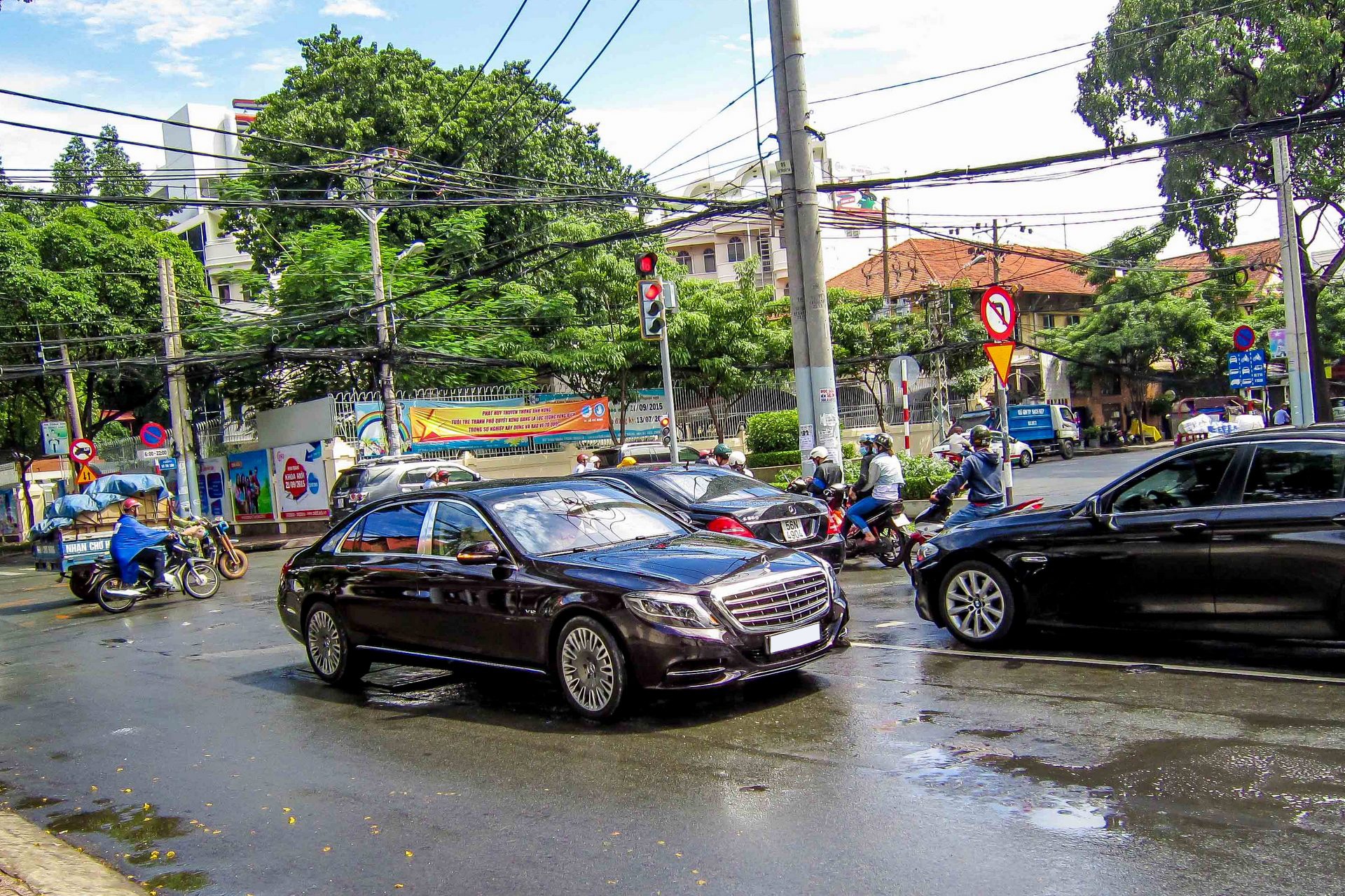Chiếc xe sang trọng nhất của Mercedes xuất hiện trên đường phố Sài Gòn cùng màu ruby black metallic đặc biệt.