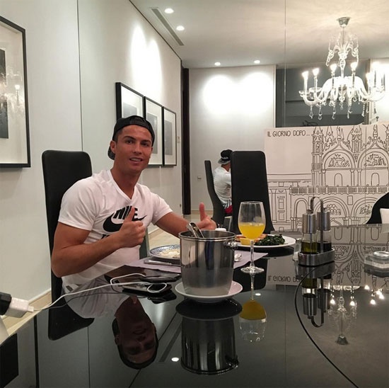 | Ronaldo khoe ảnh dùng bữa tối đơn giản nhưng đầy đủ dinh dưỡng. |