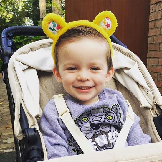 | Con trai Rooney - bé Klay đeo nơ đáng yêu ra phố cùng mẹ. |