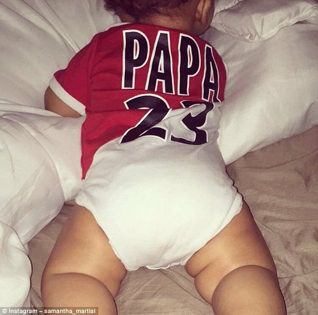 | Bà xã của Anthony Martiala khoe ảnh con gái diện áo số 23 của Monaco để cổ vũ bố. |