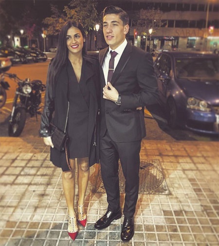 | Bellerin và bạn gái tình tứ đi dự tiệc đêm. |