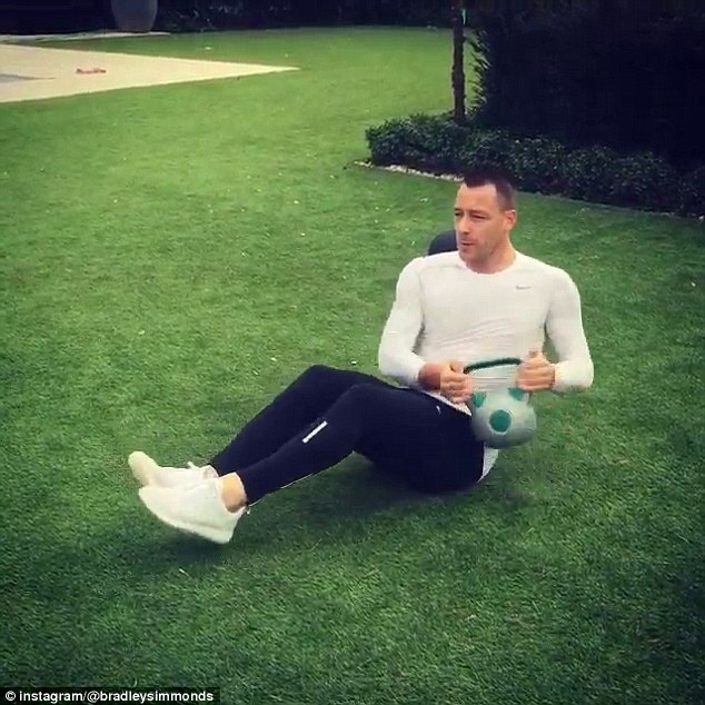 | John Terry chăm chỉ tập các bài tập để tăng cường sức khỏe ngay tại sân nhà. |