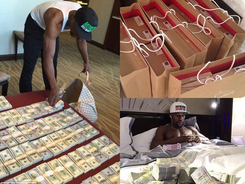 Theo thống kê không chính thức, Mayweather có đến gần 900 lần đăng ảnh, video hoặc các dòng trạng thái trên mạng xã hội để khoe tài sản. Xét về tài chính, các ngôi sao thể thao như Cristiano Ronaldo (80 triệu USD một năm) hay Roger Federer (67 triệu USD một năm) đều phải chạy dài theo Mayweather.