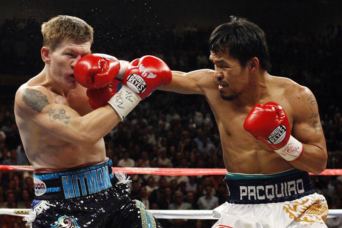 | Tháng 5/2009: Pacquiao đoạt chức vô địch không theo hạng cân sau khi đánh bại De La Hoya và hạ knock-out Hatton ngày 2/5. Ảnh: Galleryhip. |