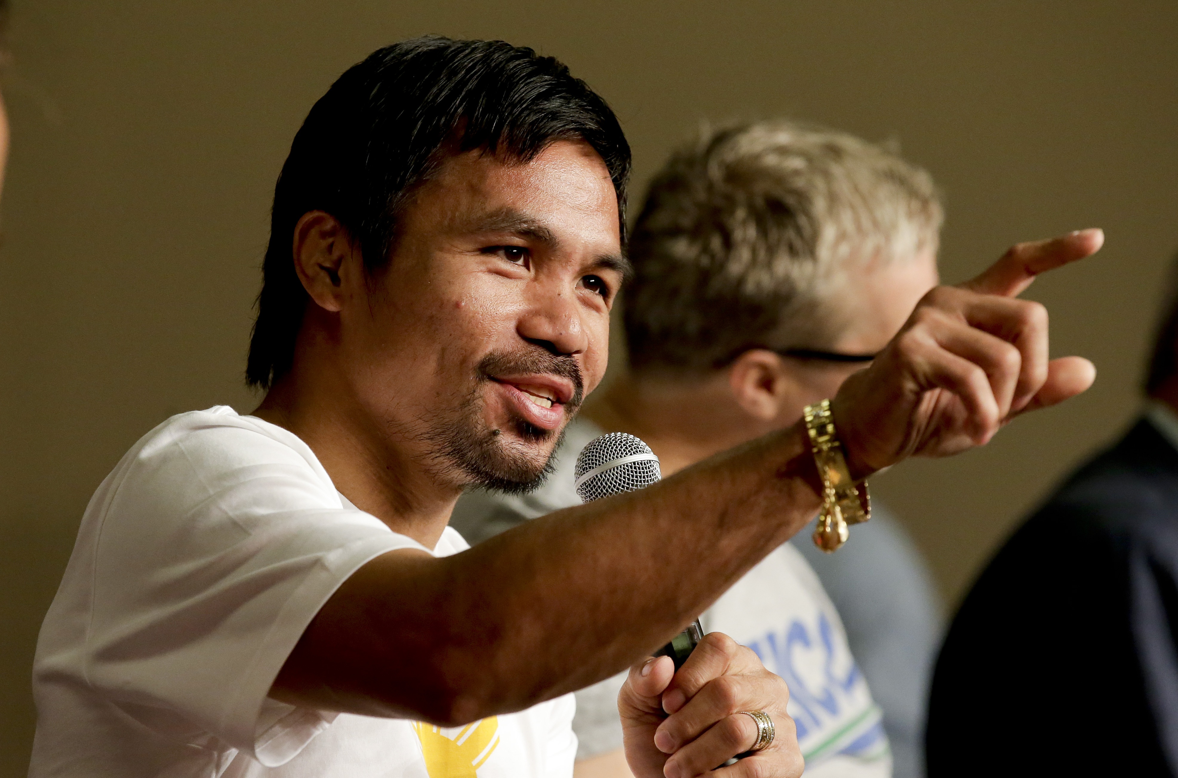 | Tháng 1/2014: Pacquiao thách đấu Mayweather nhưng trong cuộc so tài từ thiện. Thời gian này tay đấm người Philippines đang bị điều tra về thuế. Tuy nhiên, Mayweather lại mỉa mai: “Anh ta muốn Floyd Mayweather này giải quyết hộ vấn đề về thuế đây.”Ảnh: Washingtontimes. |