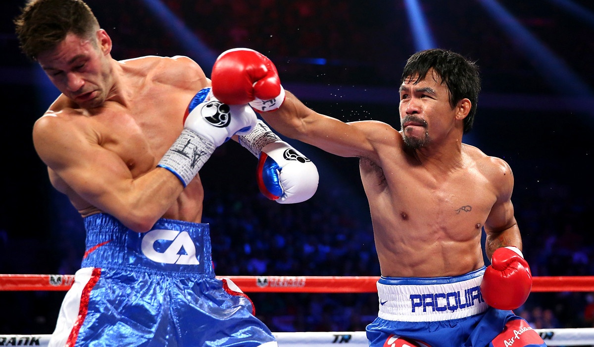| Tháng 1/2015: Ông bầu Arum khẳng định Pacquiao đồng ý với những điều khoản trong cuộc so tài với Mayweather ngày 2/5 tại MGM Grand, Las Vegas. Theo hợp đồng, lợi nhuận được chia 60-40 nghiêng về Mayweather. Vấn đề chỉ còn phụ thuộc vào thương lượng giữa hai hãng truyền hình Showtime và HBO. Ảnh: Badlefthook. |