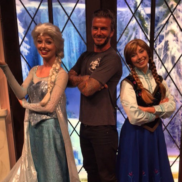 | Để chiều lòng con gái, Becks vui vẻ chụp hình cùng các nhân vật hoạt hình. |