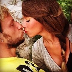 | Hình ảnh hạnh phúc của danh thủ Barca Rakitic bên người đẹp. |