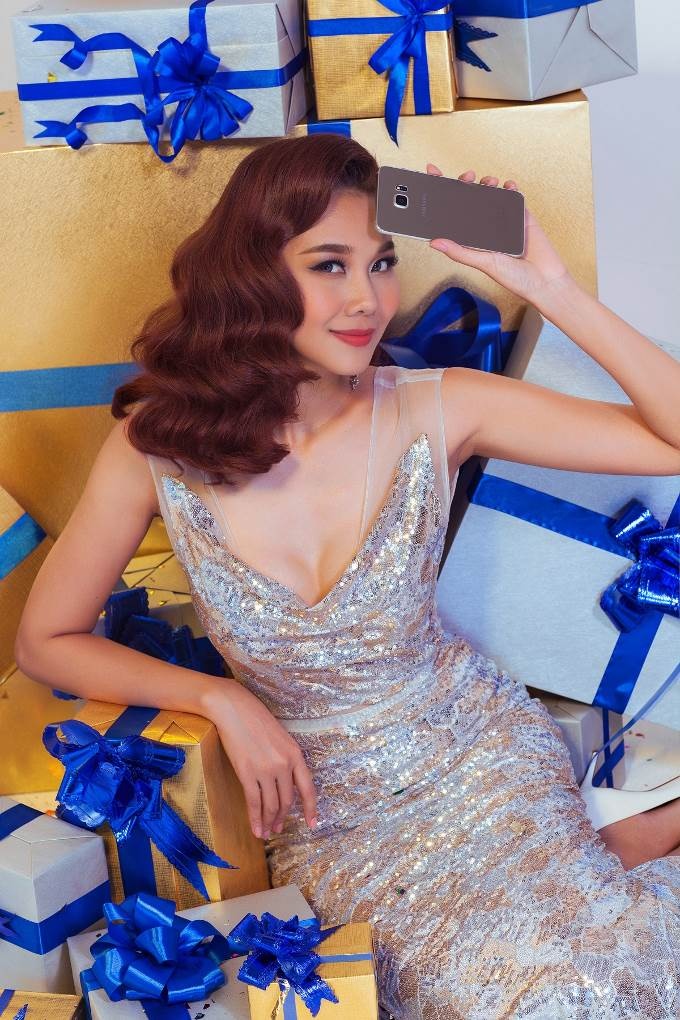 Thanh Hằng chọn chiếc Galaxy S6 edge+ sành điệu làm quà tặng cho mình sau một năm hoạt động nghệ thuật chăm chỉ. |