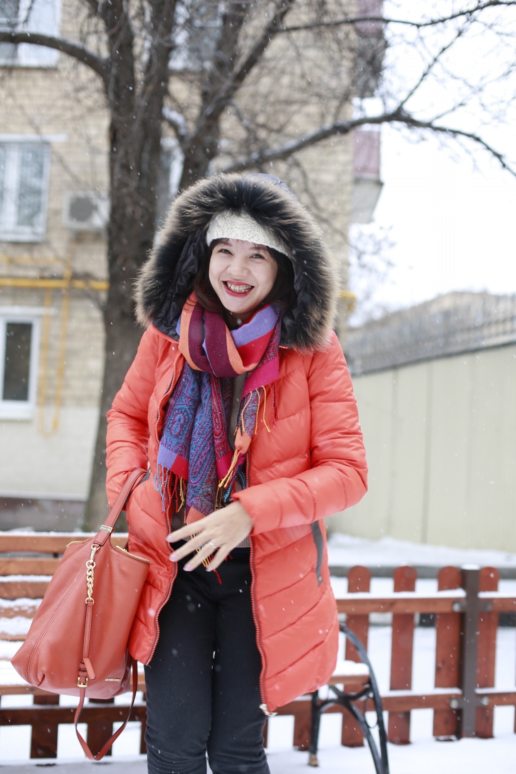 | Cô cũng tranh thủ thời gian đi ngắm tuyết và "pose" hình tại đất nước nằm ở phía bắc lục địa Á - Âu. |