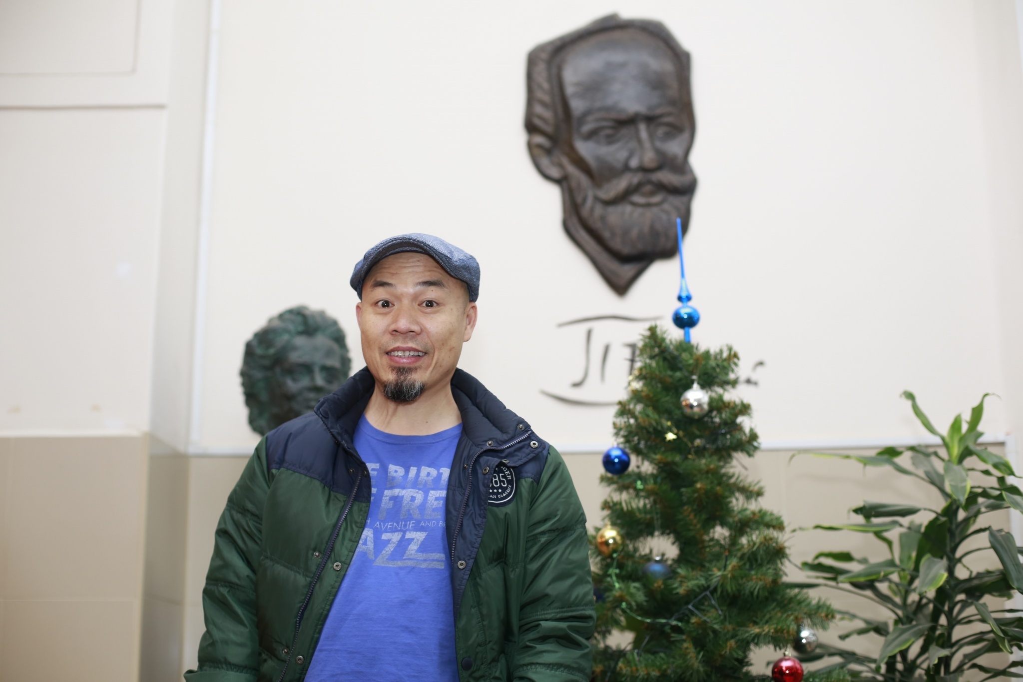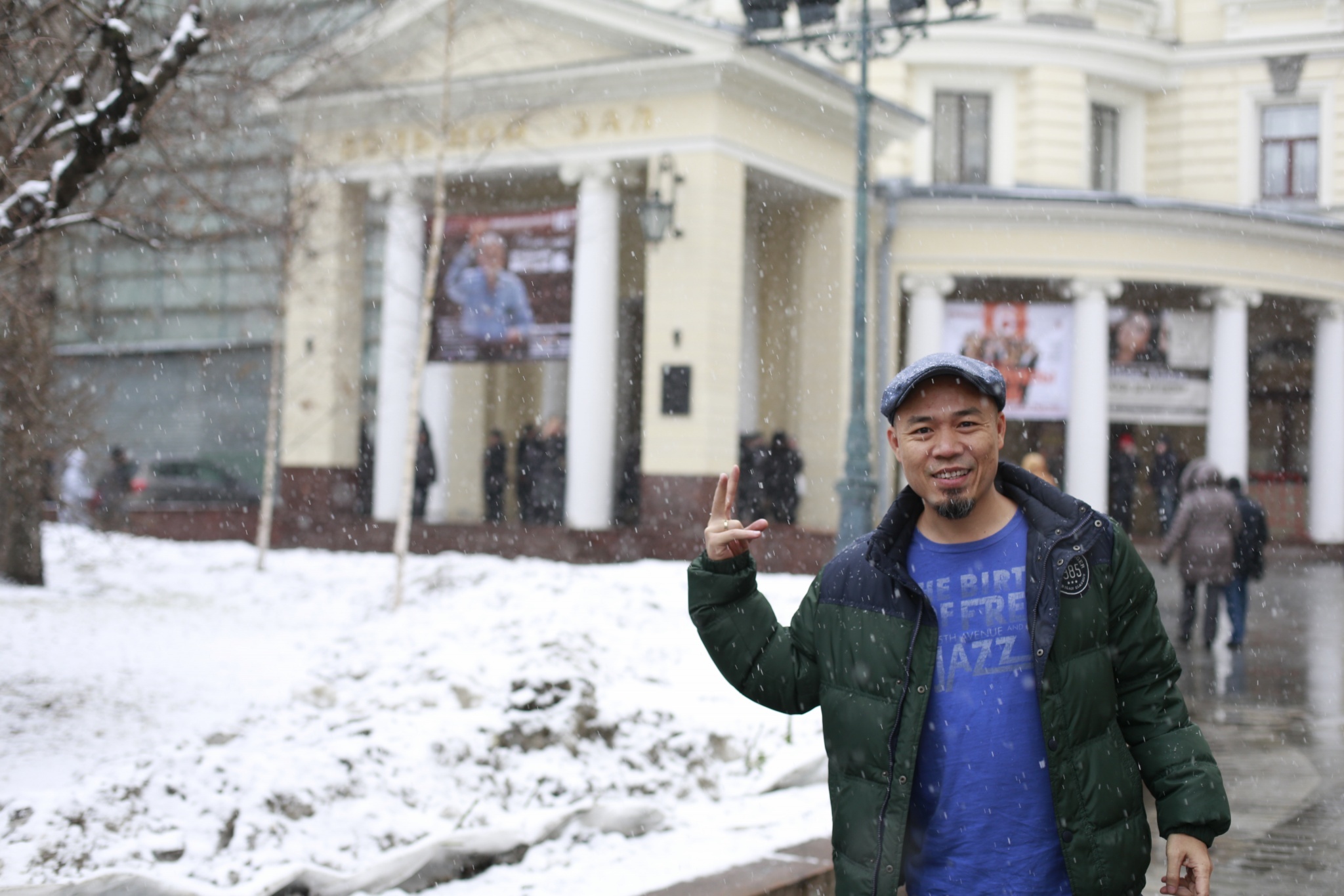 | Nhạc sĩ Huy Tuấn trong chuyến giao lưu với khán giả và bạn bè tại Nga. |