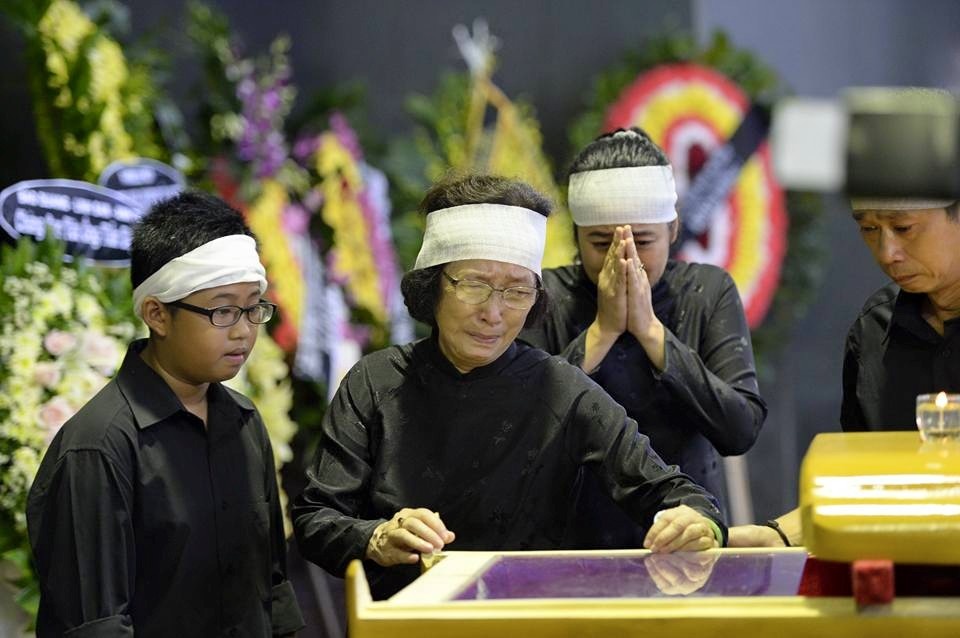 Sự ra đi bất ngờ của NSND khiến người thân, gia đình bàng hoàng, đau xót. Vợ và các con cháu nức nở bên linh cữu ông.