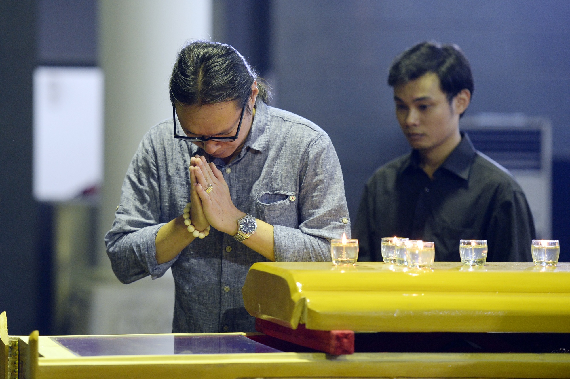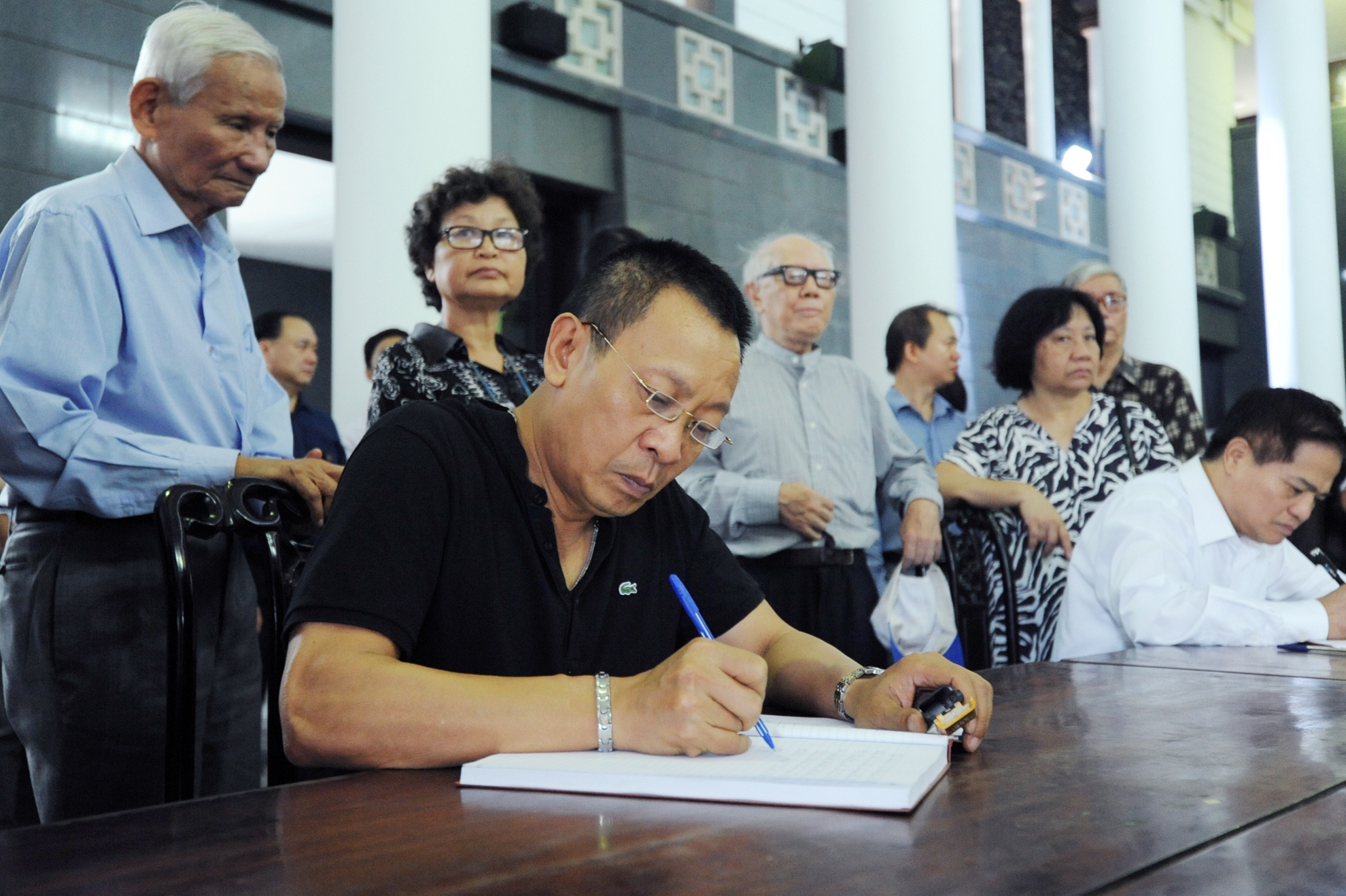 Đạo diễn Trần Lực và con trai cũng tới nói lời từ biệt với Giáo sư Nguyễn Đình Quang.